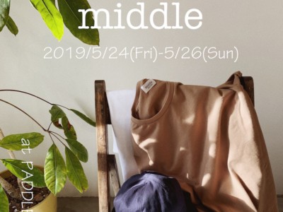 - 福岡県の「糸島」に拠点を置くmiddleのPOP UP STOREを3日間限定で開催致します。シンプルで素材にこだわり、着心地の良い「Made in Japan」のTシャツ、シャツ、デニムやハット類、革小物などが並びます。2回目となる開催、メンズ、レディースの新しいプロダクトもたくさん並びますので是