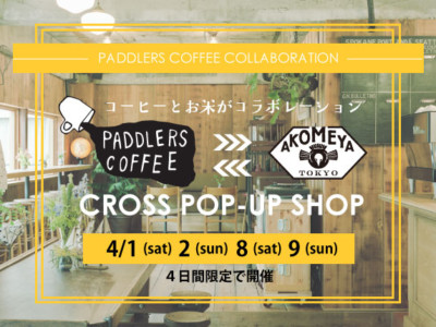- 独自の視点で、コーヒーにこだわる「PADDLERS COFFEE」 そして、お米にこだわる「AKOMEYA TOKYO」 そんな二つのブランドがお互いの店に出向き、ご家庭でできるプロの技を伝授します。 当日はスタッフと身近に体験できる、ワークショップや試食会、お互いのおすすめの商品の販売など、 二日