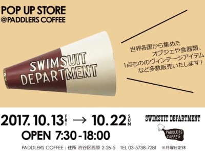 - 3月に開催し第2回目となる”Swimsuit Department”の POP UP STOREを開催します。 今回は、厳選したヴィンテージアイテムや生活を楽しくするオリジナルアイテムなどをミックスし、他にはないラインナップとなる予定です。 ぜひ足をお運びください。 会期 :